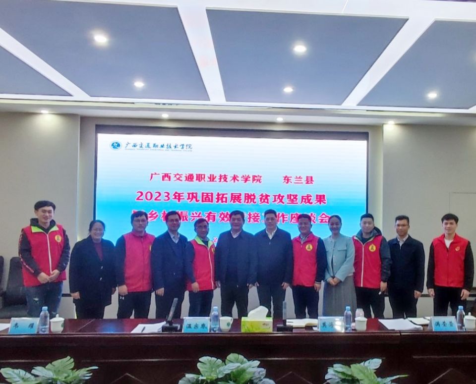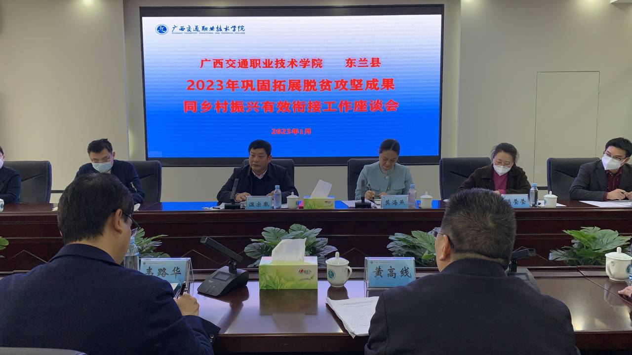 近日,东兰县壮乡英雄文化园管理处主任黄高线、县人民政府常务副县长韦路华一行到我校开展巩固拓展脱贫攻坚成果同乡村振兴有效衔接工作走访活动,学校党委书记温宗胤、党委副书记莫海燕出席活动。校地双方就全面推进乡村振兴建设开展座谈、研讨,明确新一年乡村振兴建设目标重点。
