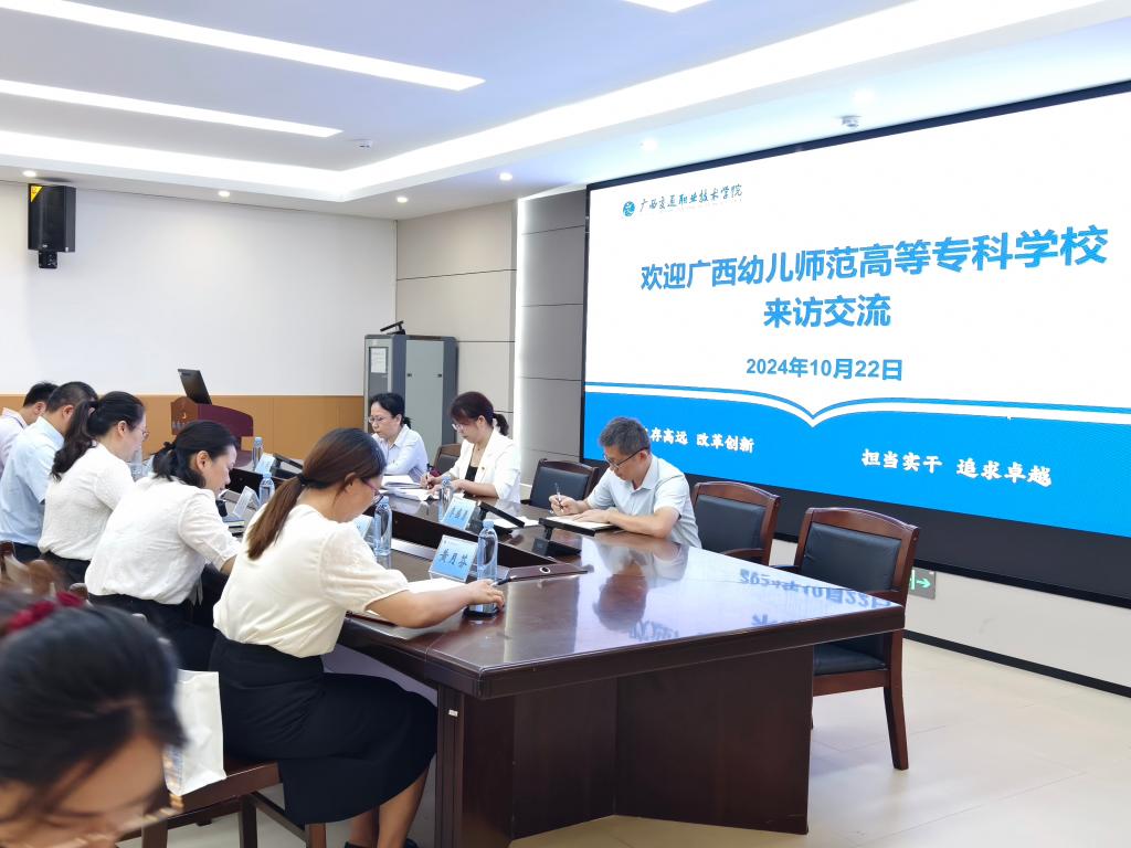 唐双双部长对我校的热情接待表示感谢,对我校近几年所取得成绩高度赞赏,并介绍广西幼儿师范高等专科学校的党建工作经验。