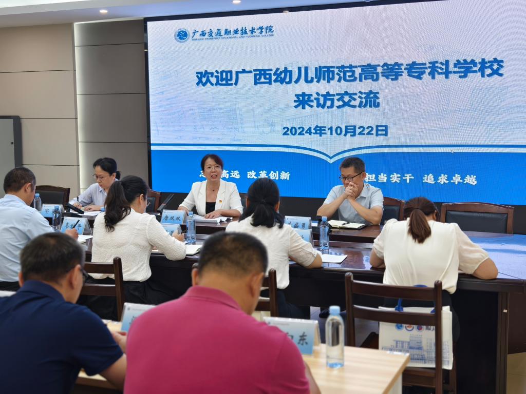(党委组织部、路桥工程学院讯)10月22日上午,广西幼儿师范高等专科学校党委组织部部长唐双双一行31人到我校进行党建“双创”、“双带头人”教师党支部书记工作室和组织员队伍建设调研交流。座谈会由党委委员、党委组织部部长满莹莹主持。