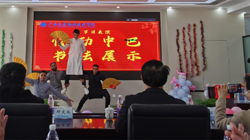 留学生卡津、里知旺、乌马尔、阿里和穆罕穆德用喜悦的中巴舞蹈和精彩的书法展示表达了对中国的喜爱和留恋,2021、2022级国际学生代表也通过线上发言送来美好的祝福。