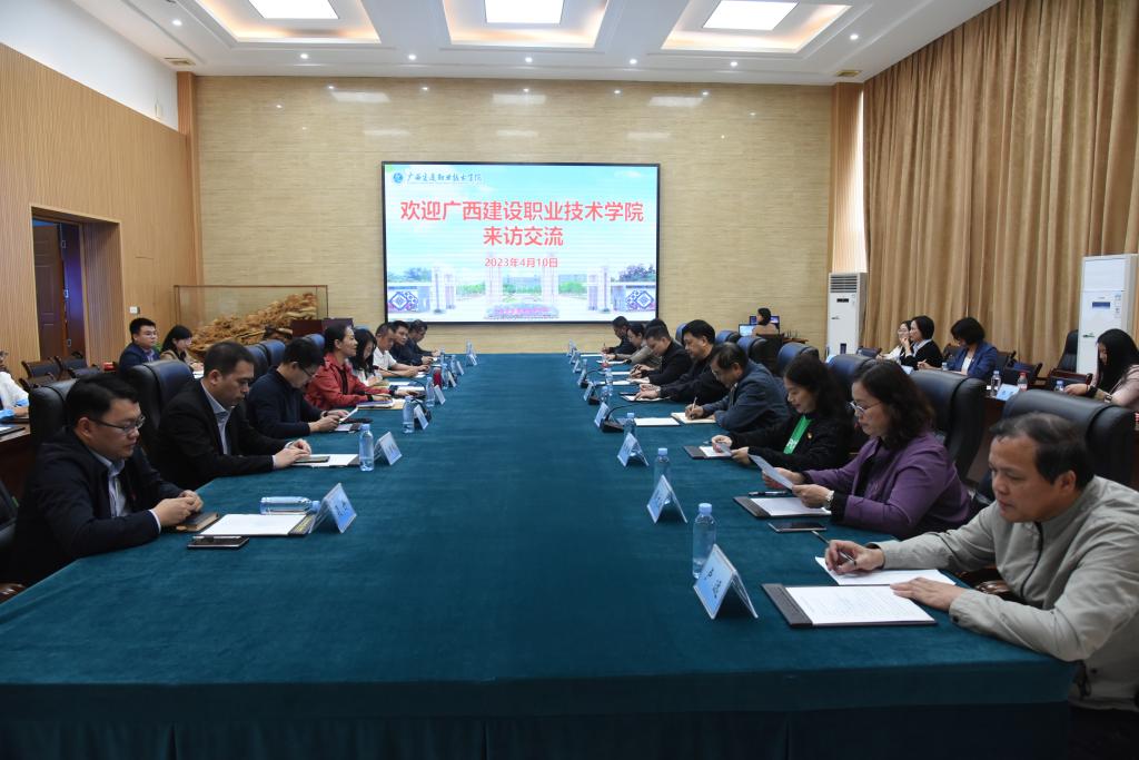 4月10日,广西建设职业技术学院校党委副书记曾繁雄一行16人到我校开展党建工作交流。学校党委副书记莫海燕接待到访一行,党委组织部、相关学院的党组织负责人和全体专职组织员参加了交流会。