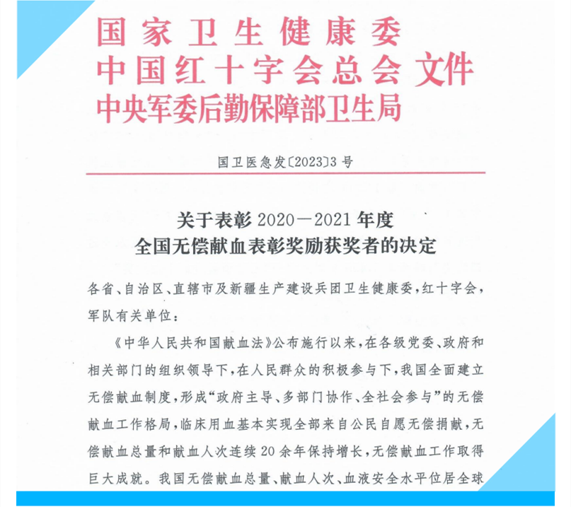 近日,国家卫生健康委等单位发布全国无偿献血工作表彰名单,学校获评“2020-2021年度全国无偿献血促进奖单位奖”荣誉称号。