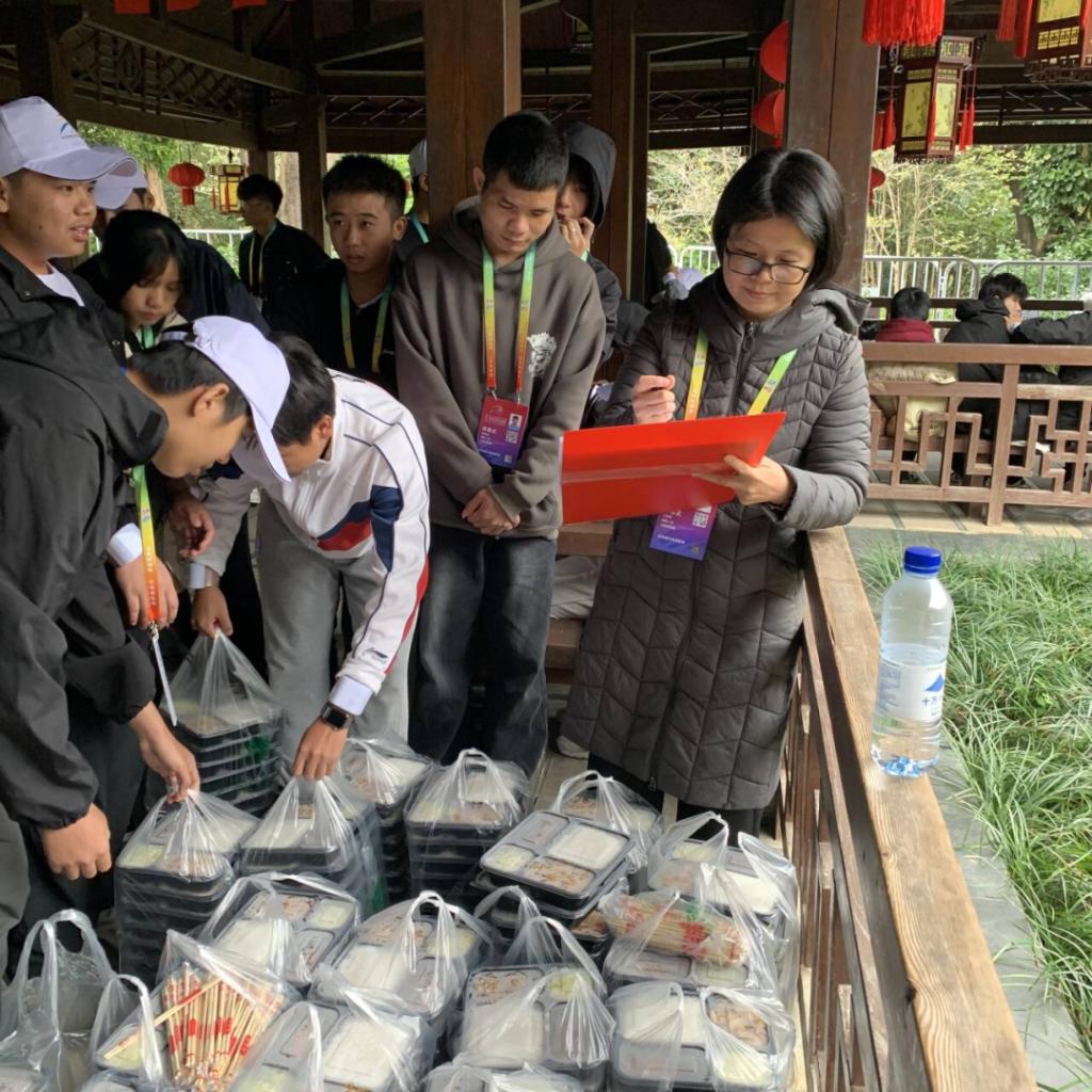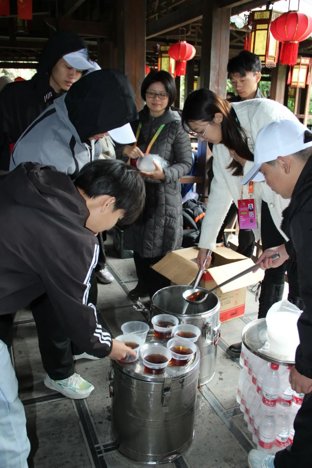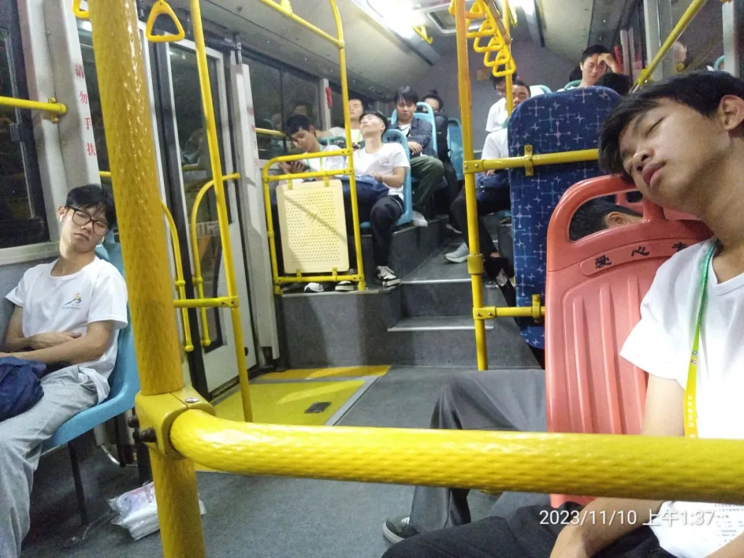 11月13日,气温骤然下降至十来度,而排演要求8:50全体演职人员学生要到排演地点候场排演。为了按时到达排演地点,当天值班的辅导员江丽萍老师托朋友帮忙送两个小孩上学,6:00从家里出发,驱车冒雨赶去学校;7:10到校后与一起值班的严勇俊老师开始催促同学们吃好早餐做好集队准备,7:35开始进行小组点名清点人数,同学们迅速上车,清点13辆车的人数无误后,7:45发车前往青秀山铜鼓广场彩排。经过将近一个小时的车程,按时到了青秀山排练地点,同学们熟悉地找到自己的阵营休息,组长带领队员们习惯性地到道具组领取道具并分发,确认道具能正常使用后,立即冒着小雨进行节目联排,每次联排近1个小时,同学们穿着单薄的排演T恤,冷得直哆嗦,但无一人放弃排练。午饭时间,学校党委书记陈湘如来到友谊长廊看望同学们,给大家加油鼓劲,让寒冷的初冬增添了温暖,同学们热情高涨。晚上眼看就开始联排,但是又下起了小雨,同学们贴着学校团委购买的暖宝宝上场啦!由于天气骤变,不少同学都感冒了,但他们都忍着没说,坚持排练,他们说了“来都来了,就要认真对待,不能退缩”,让人很是感动。联排结束后,归还道具,领取夜宵,迅速清点人数上车返校,安全返校已是凌晨1:00!而江老师到家时,已是凌晨2:00多!同学们最近常挂嘴边的话就是:星光不问赶路人,哪里需要去哪里!.......如此的场景,是每个值班辅导员班主任和排演学生们均经历过的,但每每大家披星戴月而归时,满是打胜仗的豪气。