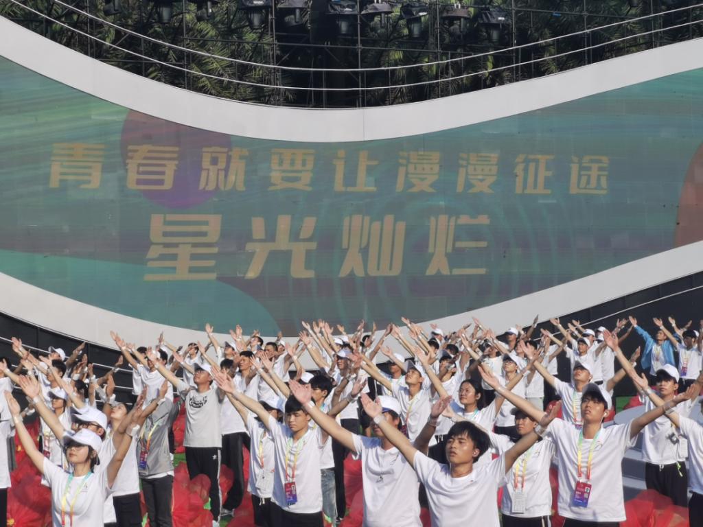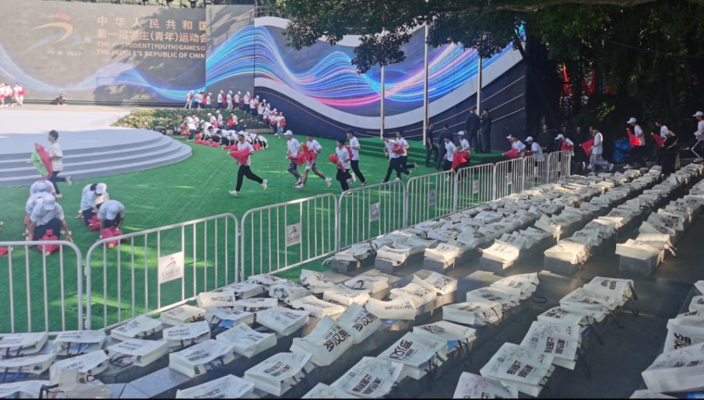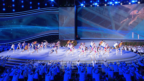 11月15日,第一届全国学生(青年)运动会在青秀山铜鼓广场正式落下帷幕。伴随着激昂的鼓点声和悠扬的歌唱声,由360名航海学子演绎的360朵“朱槿花”铺满整个会场,鲜花茁壮成长、缓缓绽放,泛起阵阵“鲜花波浪”,将青春的热情和欢乐传递给每一个人。他们用青春激情为人们献上了花海与星光的视觉盛宴,用青春汗水为学青会圆满闭幕交上了“交院答卷”。让我们一起来看看闭幕式的精彩瞬间。