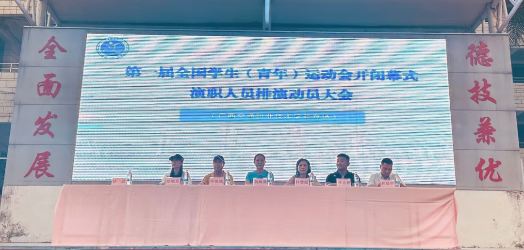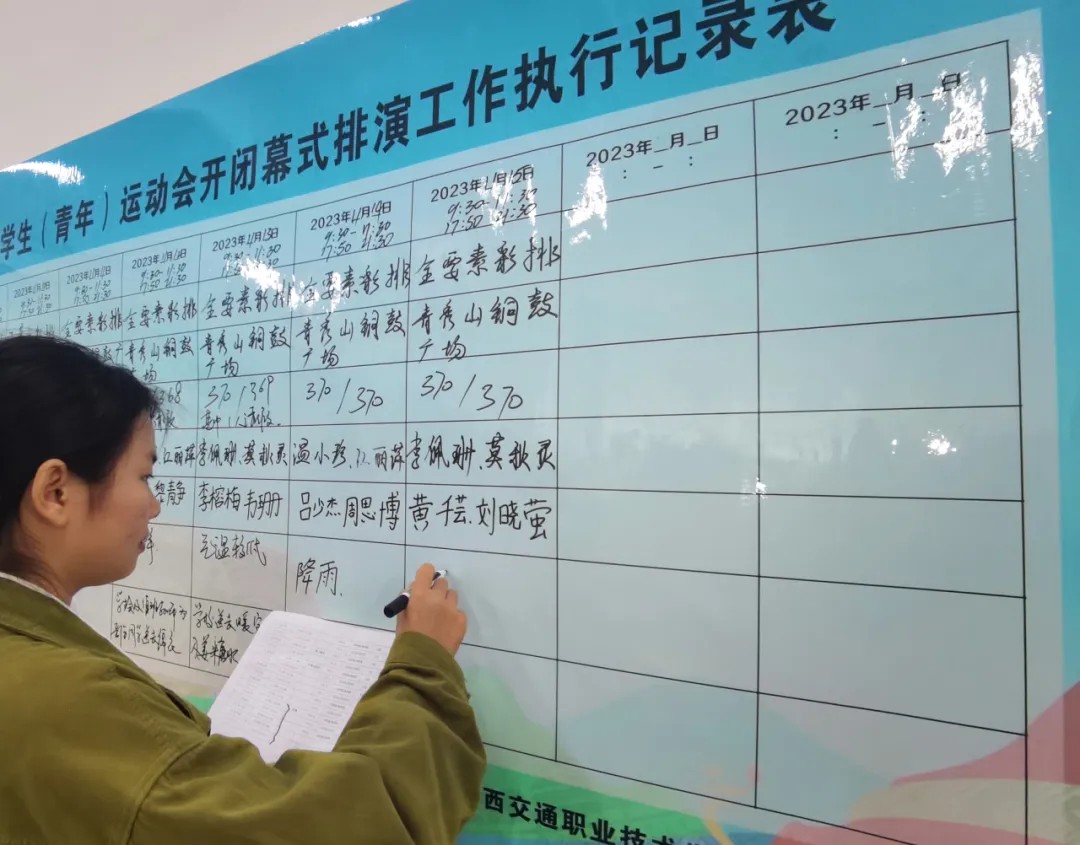 广西交通职业技术学院作为参与学青会开闭幕式表演工作的八所院校之一,学校党委高度重视本次开闭幕的排演工作,多次到相思湖校区和排练现场进行指导。11月13日,学校党委陈湘如书记到排练现场指导工作,莫海燕副书记也多次到航海工程学院进行工作指导,对参与学青会排练的学生予以关怀与鼓励。