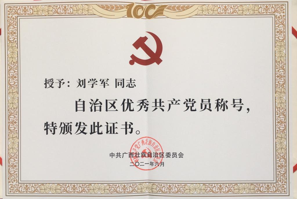 2021年6月24日,广西壮族自治区“两优一先”表彰大会在南宁举行。汽车工程学院党总支书记、院长刘学军荣获“广西壮族自治区优秀共产党员”称号。