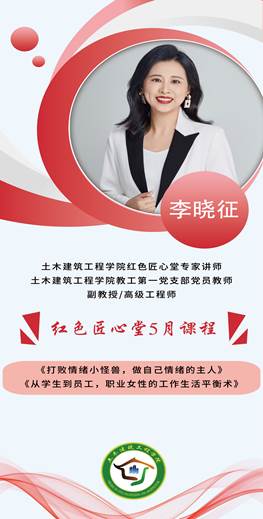 由土木建筑工程学院党总支主办,教工第一党支部承办的“红色匠心堂”五月专题讲座开讲啦!本次讲座将由教工第一党支部的党员教师从教学、科研、思想政治工作等方面分享自己的经验心得,欢迎全校师生到场聆听。
