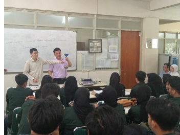 在印尼国立技术大学实训课程培训班,李克元、周学翔两位老师为同学们开展了回弹仪、马歇尔电动击实仪等仪器的操作演示,为培训班进行了《细集料表观密度》实训课程的理论授课和实操演示,课堂融合知识、技能理实一体,互动氛围良好,得到印尼教师、学生的一致肯定。
