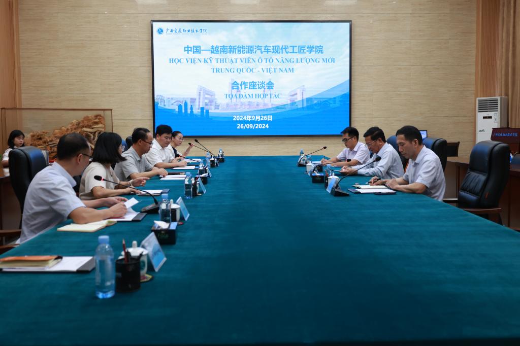 建设中国—越南新能源汽车现代工匠学院是由自治区教育厅立项,是教育部与自治区政府共建的重要任务,我校高度重视,通过中越双方互访、座谈交流等方式,就推进在越南建设中国—越南新能源汽车现代工匠学院进行精心谋划,认真研讨,最终与越南同安高科学院达成重要共识,完成了推进该项目落地实施的关键一步。