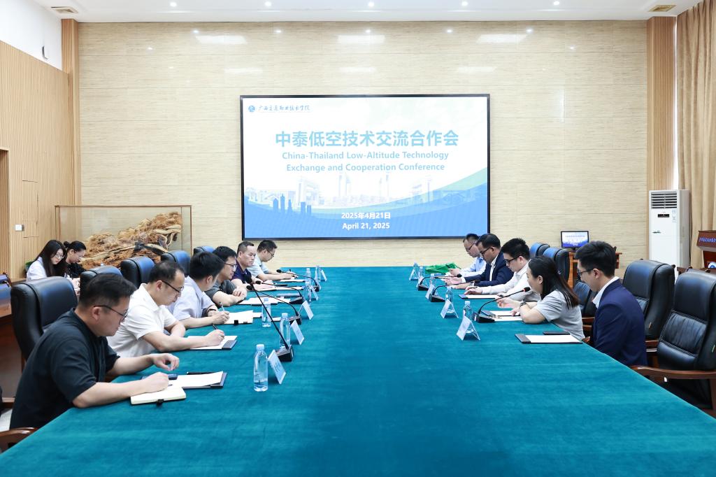 (东盟国际学院 讯 杨 洁/文)4月21日下午,泰国格乐大学副校长李绍云一行5人访问我校,双方在昆仑校区管理楼1楼会议室举行了中泰低空技术交流合作会。学校副校长戴晓云出席会议。