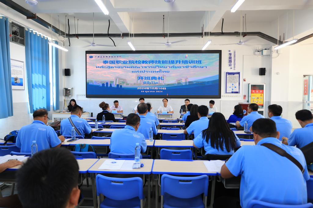 来自7所泰国职业院校的专业教师及我校东盟国际学院、汽车工程学院、经济管理学院等相关部门负责人参加开班仪式。