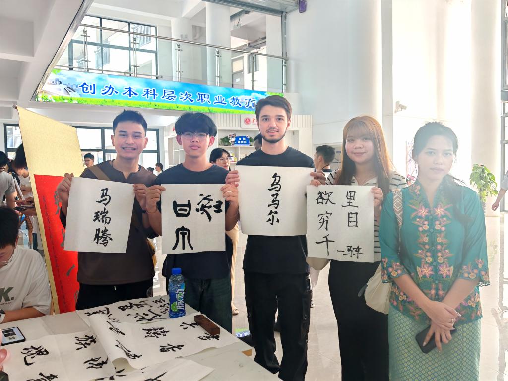 留学生也成了这场文化盛宴中一道靓丽的风景线。他们身着本国传统服饰,首先用一曲中国经典民歌《茉莉花》点燃全场气氛,用歌声和舞姿表达对中国文化的喜爱。在书法体验区,留学生与中国学生以字交友,以礼传情,自信展示他们在中国文化课堂上的学习成果。