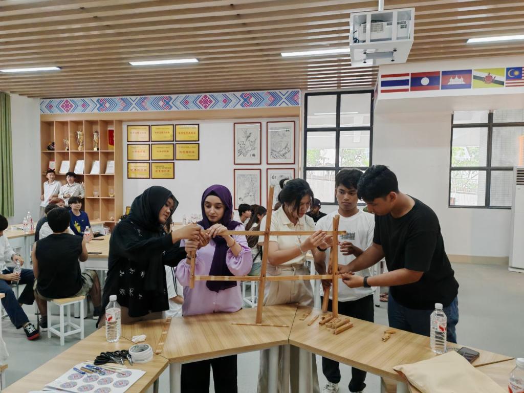 活动以非物质文化遗产为主线,贯穿始终。侗族传统建筑营造技艺的讲解与体验,让学生们感受到中国传统建筑的智慧与美感;绣球灯笼的手工制作,则融入了壮族绣球的吉祥寓意与中秋团圆的节日内涵。在亲自体验和制作的过程中,中外青年更深刻体会到中华文化中“匠心”与“传承”的精神内核。