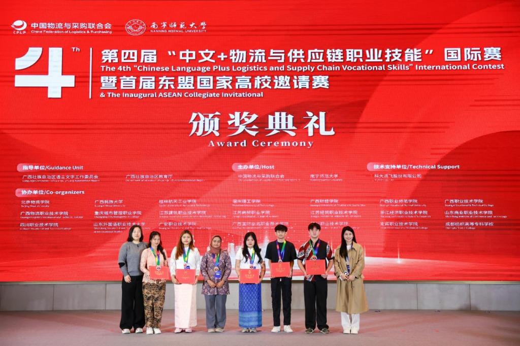 12月8日,第四届“中文+物流与供应链职业技能”国际赛暨首届东盟国家高校邀请赛决赛在南宁圆满落幕,我校代表队经过激烈角逐,最终斩获一等奖2项、二等奖4项,连续三届在该项国际赛事中取得突出成绩,彰显了我校在商贸与物流管理国际人才培养方面的强劲实力和显著成效。