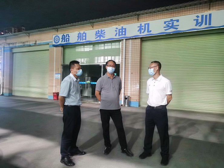 (航海工程学院 讯 王虎平/文、图)9月5日晚,学校党委副书记、校长李文勇率学校相关职能部门负责人到相思湖校区检查新学期开学工作,广西交通运输学校、航海工程学院全体领导班子陪同检查。