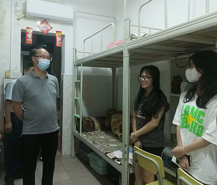 走访期间,李校长亲自到学生宿舍区域查看同学们的住宿环境及卫生情况,在宿舍与同学们进行了亲切交流,询问学生们的开学准备情况,聆听学生们的各方面意见和建议。李校长对同学们良好的宿舍卫生状况给予了高度认可,并指出,宿舍是大学生成长的重要场域,良好的宿舍文化建设是学生健康成长成才的重要前提,叮嘱同学们要继续发扬良好的卫生行为习惯,共同打造整洁、温馨、和谐、文明的生活住宿环境。