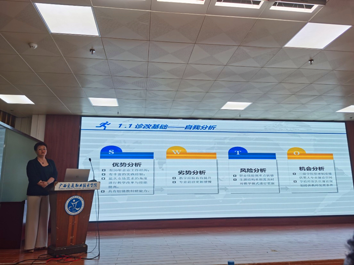 陆芸副处长对学院的汇报作了点评总结,她高度赞扬唐锋院长所做的学院层面诊改情况报告,对唐锋院长及汇报教师诊改内容方向性的明确、诊改思路的清晰、目标链与标准链的契合、诊改实施的过程都给予了极大的肯定。同时,陆芸副处长也建议教师在诊改过程中,要对SWOT分析方法的内涵和诊改实施的“8”字改进螺旋加深理解,要进一步明确目标链与标准链的传导,要始终使教师个人发展服务于专业、学院和学校的发展要求。