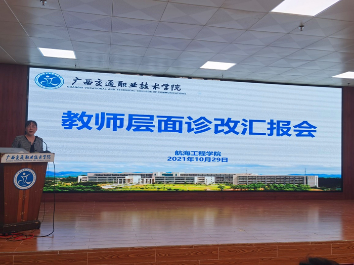 (航海工程学院 讯 王鸿烨/文、图)10月29日下午,航海工程学院在实训综合楼402报告厅举行了多层面的内部诊改汇报大会。汇报由航海工程学院唐锋院长主持,学校人事处副处长、教师发展中心副主任陆芸、姜敏出席了本次会议,学院全体无课教师参加会议。