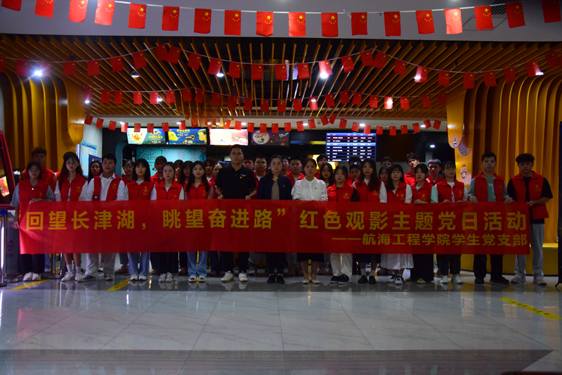2021年是抗美援朝出国作战71周年,为深入学习习近平总书记关于纪念抗美援朝出国作战和党史学习教育重要讲话精神,把“学党史、强信念、跟党走”的学习教育任务落到实处,2021年11月6日,经党总支审批,航海工程学院学生党支部组织开展“回望长津湖,眺望奋进路”红色观影主题党日活动,组织35名积分在90分以上的入党积极分子参加观看影片《长津湖》。