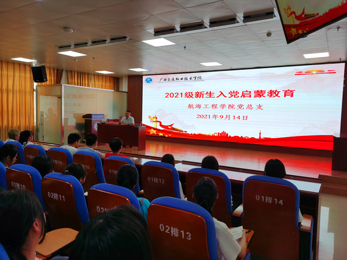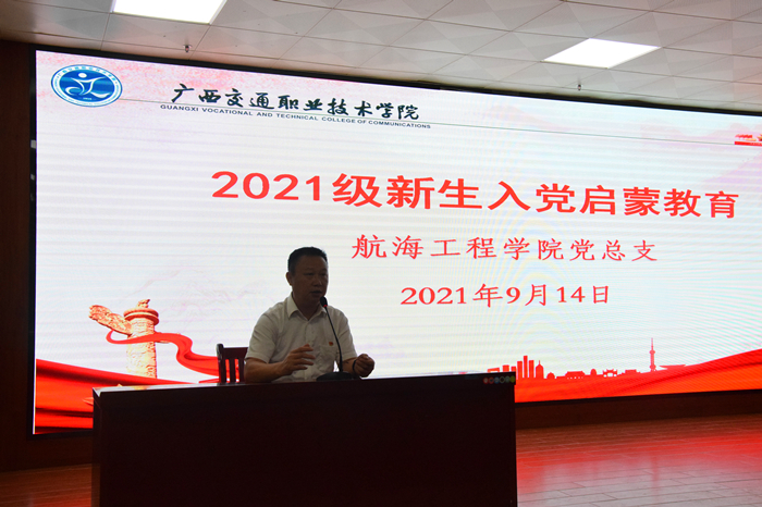(航海工程学院 讯 董小夏 图/文)2021年9月14日上午,航海工程学院党总支在实训楼402报告厅(相思湖校区)陆续开展针对不同专业的入党启蒙教育系列讲座。本次活动航海工程学院全体新生参与,学院院长唐锋、党总支书记林燚宁、学生党支部书记严丽分别主讲一场讲座。