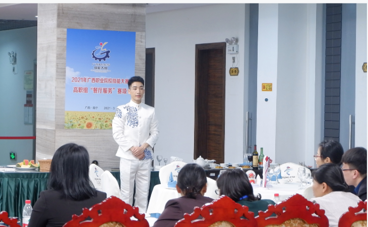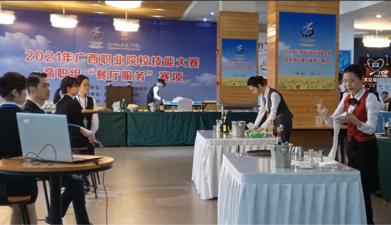 (航海工程学院教工党支部 讯 梁 娟、江丽萍/图文) 2021年广西职业院校技能大赛高职组《餐厅服务》赛项于3月25-31日在南宁职业技术学院如期举行,我院首次参赛两个队均取得了三等奖的佳绩!