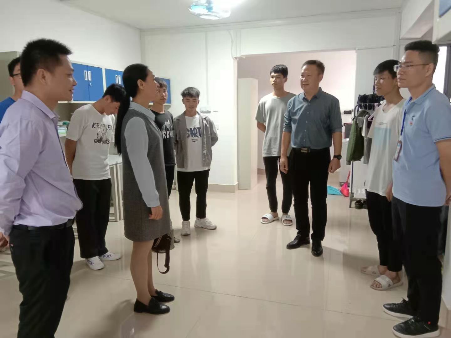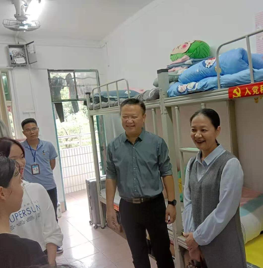 莫副书记来到新生男生宿舍时,正是学生们下课陆续回宿舍的时间,看到他们自信、阳光的笑脸,看到干净整齐的宿舍,莫海燕副书记说:“这是再真实不过的宿舍卫生了,你们要保持好这样的习惯,把宿舍当做家,把舍友当做家人,相互帮助、相互理解。”并嘱托同学们要尽快休整,以更好的状态适应大学生活,扎实学好专业知识,要在大学里学有所成,实现自己的理想,做一个内外兼修的新时代青年。