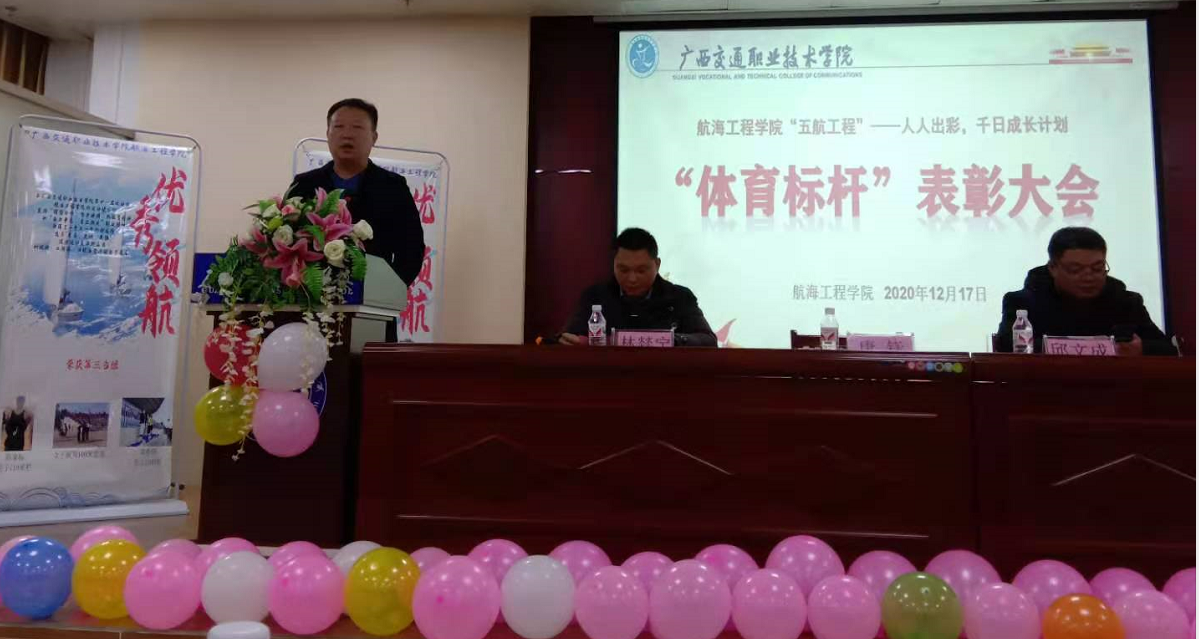 (航海工程学院党总支讯 黄伟芯 文/江丽萍 图) 12月17日下午,航海工程学院“体育标杆”表彰大会在相思湖校区实训楼402报告厅召开,学校学工处邱文成处长,航海工程学院唐锋院长、曾志伟副院长出席了本次会议。党总支副书记林燚宁(主持全面工作)主持会议。全院师生和运动健儿300多人参会。