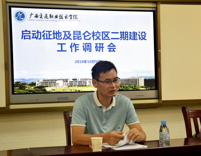 (航海工程系 讯 谭菲/文)2019年10月9日下午,广西交通职业技术学院副院长韦红教一行到航海工程系开展启动征地及昆仑校区二期建设工作调研活动,此次调研以座谈会的形式开展,系党支部书记唐锋、党支部副书记林燚宁及相关负责人参加调研会。