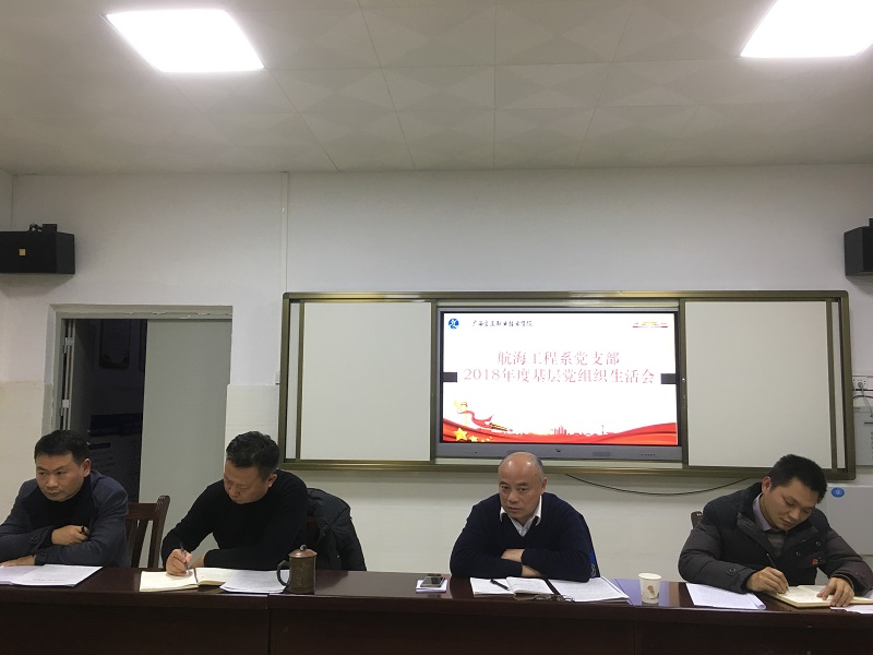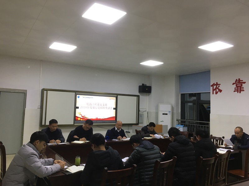 (航海工程系 讯 王虎平/文、图) 为进一步贯彻落实党的十九大各项决策部署,切实加强党建工作顺利开展,加强党员干部思想作风建设,2018年1月10日19:30,航海工程系党支部在航海校区实训大楼401会议室由林燚宁副书记主持召开2018年度基层党组织生活会,支部黄琼念教授、唐锋书记、林燚宁副书记等11名同志参加了会议,其中学院黄琼念副院长以普通党员身份参加了会议,并对会议进行点评指导。