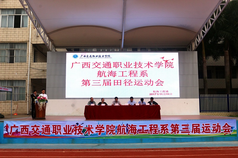 【航海工程系 讯】11月11日上午,广西交通职业技术学院航海工程系第三届田径运动会在广西交通运输学校田径场开幕,航海工程系蒋运劲教授、曾志伟副主任以及系部其他老师出席开幕式,与全校师生共庆运动会的到来。全系500多位同学参加开幕仪式。蒋运劲教授致开幕词,并宣布运动会开幕。