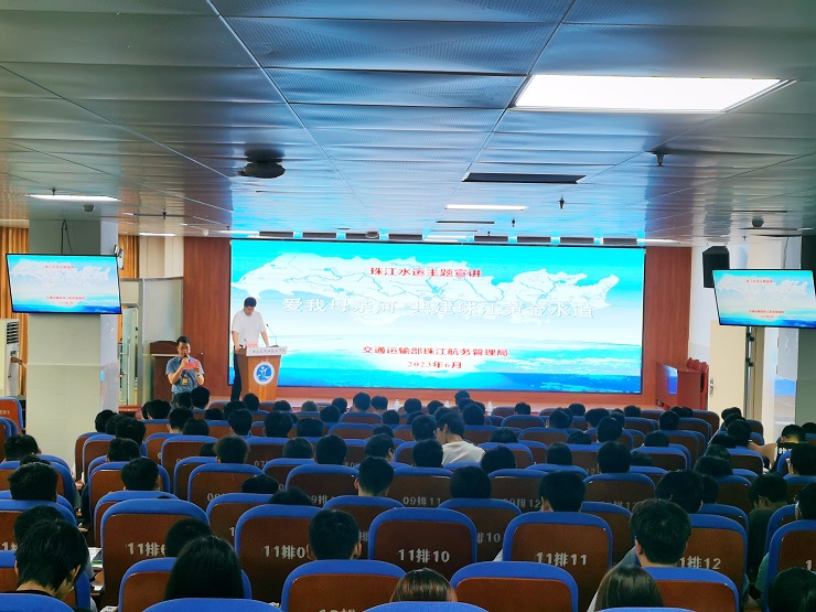 此外,左自林还特别结合2023年全国“安全生产月”及“中国航海日”活动主题,详细介绍了珠江水系水上交通安全总体形势及水上交通安全常识,在知识普及的同时,进一步提升了同学们的海防意识和安全理念,厚植航运文化。