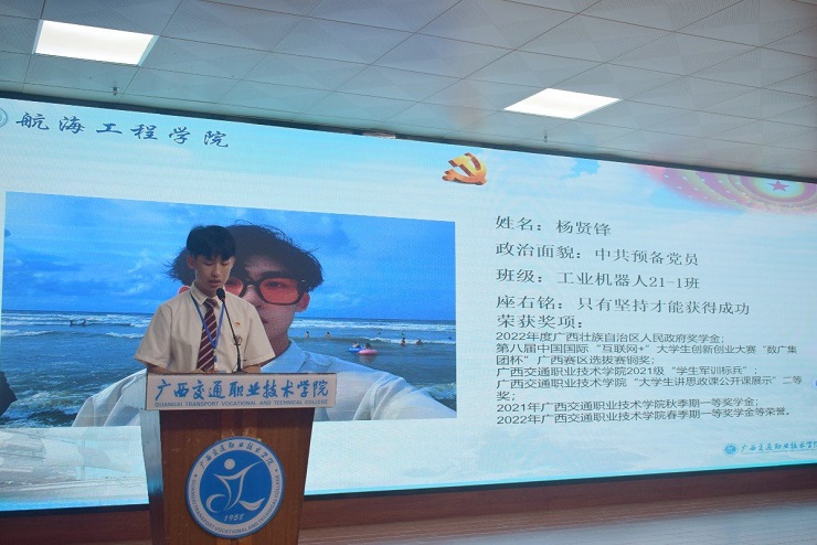 图为入党积极分子培养联系办前任秘书长杨贤锋发言