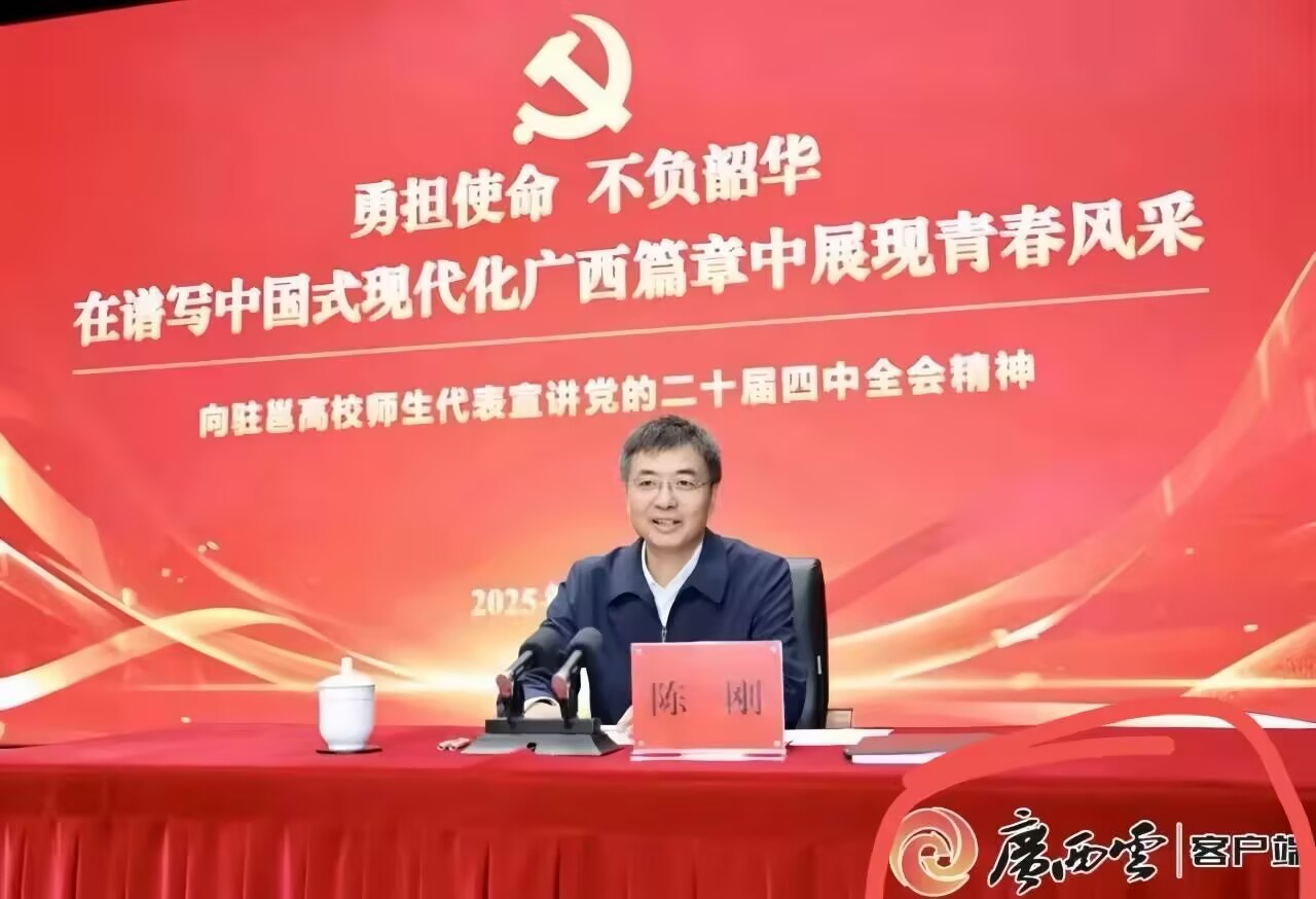 陈刚书记结合党的二十届四中全会部署与自治区党委十二届十一次全会工作要求,从“当下大势怎么看、未来五年怎么干、当代青年怎么办”三个维度展开宣讲。他介绍,党的二十届四中全会审议通过了“十五五”规划建议,当前我国发展处于战略机遇与风险挑战并存的时期;而广西正迎来历史最好发展阶段,思想、格局、思路、作风的深刻转变,为高质量发展积蓄了动能。