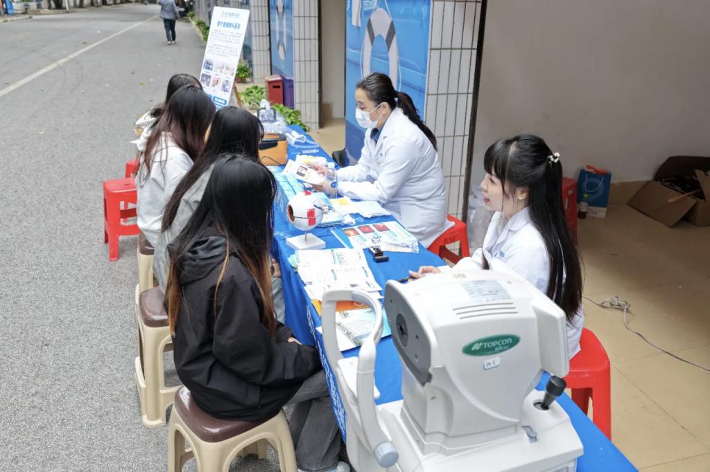 活动第一阶段,在大学生“一站式”服务社区开展眼健康检查,吸引了众多同学前来参与。来自南宁普瑞眼科医院的医务团队携带专业设备,耐心细致地为每一位同学进行视力测试、电脑验光、眼底检查等多项检查,并针对部分有干眼症状的同学提供了专业的干眼治疗体验。现场还设立了眼镜清洗服务点,志愿者们热情地为同学们清洗眼镜,讲解日常护眼小常识,细致入微的服务赢得了大家的一致好评。