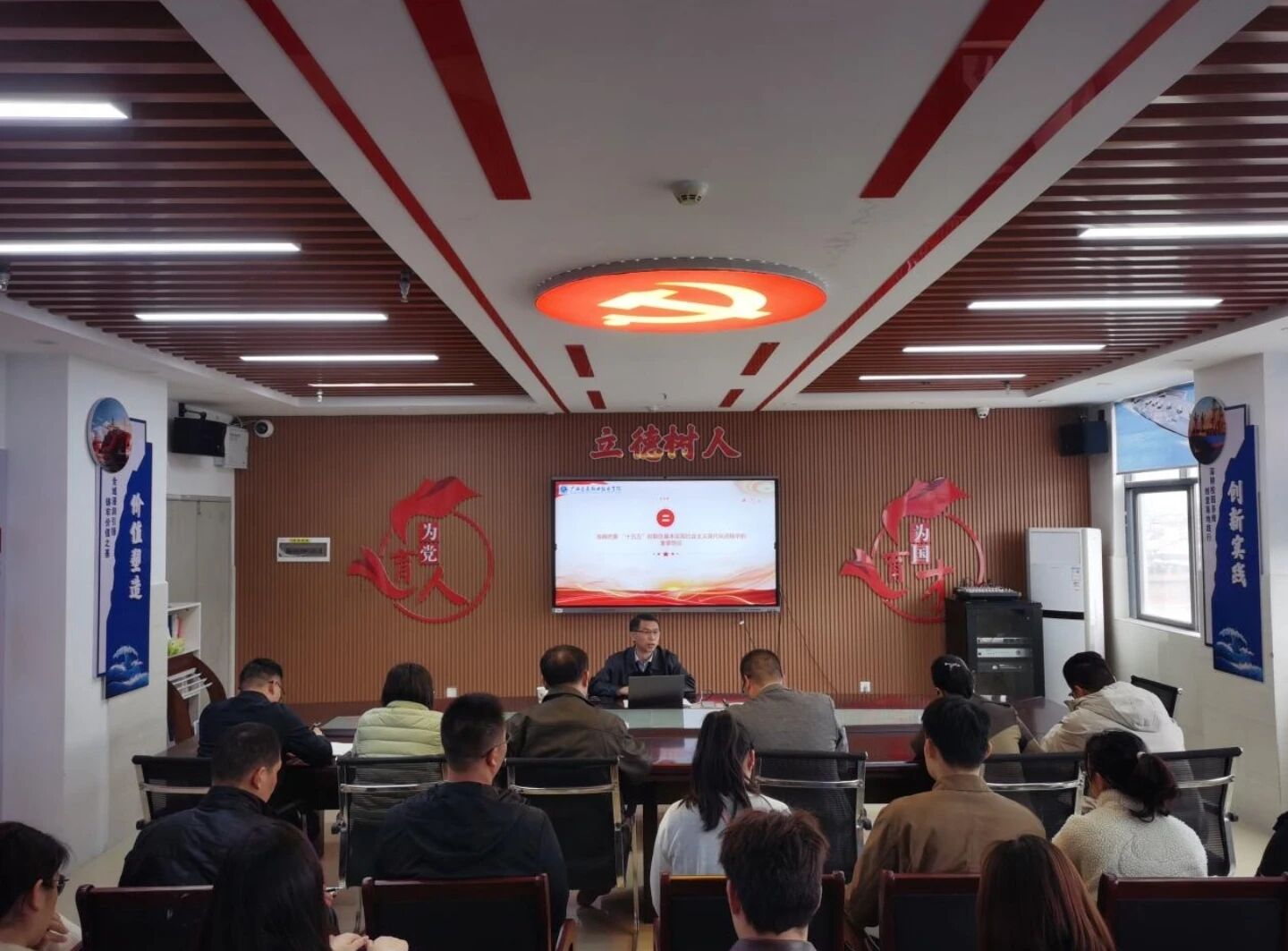 宣讲会上,黄云奇副校长紧扣党的二十届四中全会核心要义与精神实质,从五个方面对全会精神作系统深入解读。他先阐明全会召开的背景及重要意义;分析“十五五” 时期在社会主义现代化进程中的重要地位,梳理“十四五”时期我国发展的重大成就,剖析“十五五”时期的国内外发展形势;详细解读“十五五”时期经济社会发展的指导思想、重大原则、主要目标、重大举措等;最后强调坚持和加强党的全面领导对推进中国式现代化的根本保障作用,明确凝聚磅礴发展力量的实践要求。并结合职业教育发展趋势、学校办学发展定位及航海工程学院航运专业特色,勉励广大教师要将学习成果转化为发展动力,坚守职教初心、勇担育人使命,立足航运领域人才需求,培养可堪大用的航运时代新人。整场宣讲兼具理论高度与实践温度,内容详实且深入浅出,不仅是思想的“充电”,也是行动的“动员”,为广大教师深入学习领会党的二十届四中全会精神、科学谋划“十五五”发展提供了有力指导。