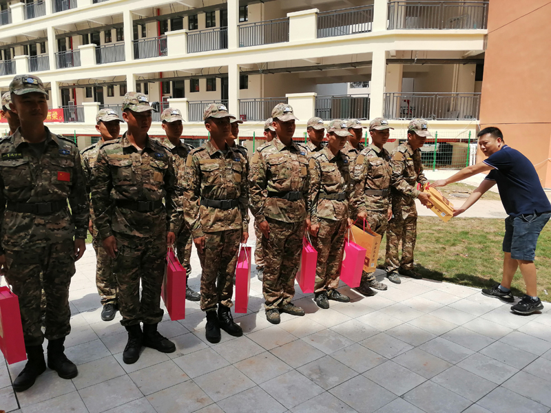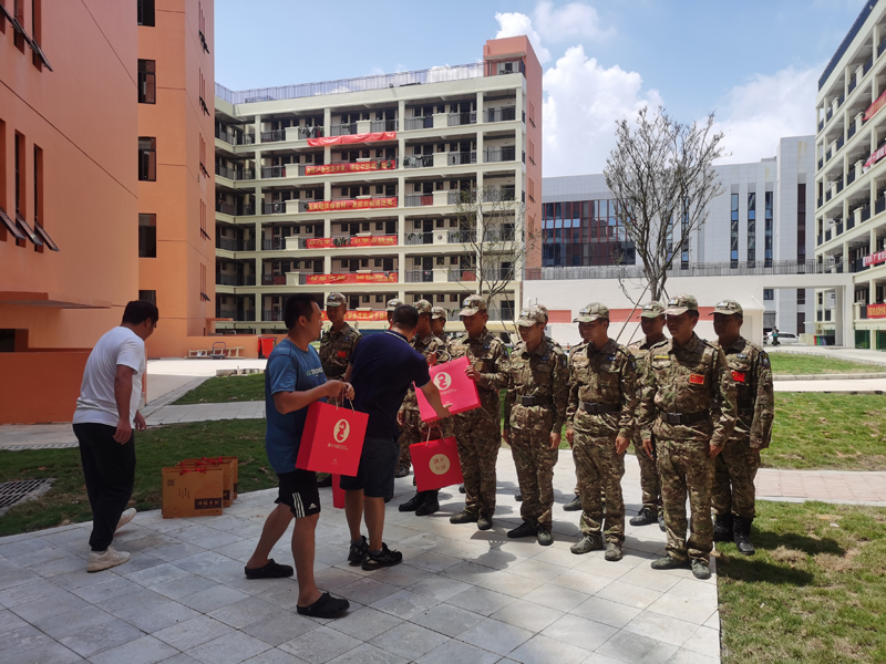 中区食堂主任郭仁义表示:教官们在新生军训带队训练中辛苦了,他们烈日当空,汗如雨下,勤勤恳恳,诲人不倦,为培养新一代交院人挥洒下辛勤的汗水,在传统中秋佳节到来之际,食堂为教官们送上月饼,送来祝福,道一声:你们辛苦了!
