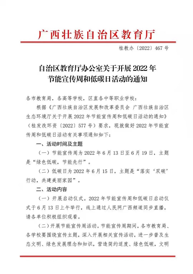 今年6月13日至19日为全国第32个公共机构节能宣传周,主题是“绿色低碳,节能先行”。6月15日为全国低碳日,主题是“落实‘双碳’行动,共建美丽家园”。