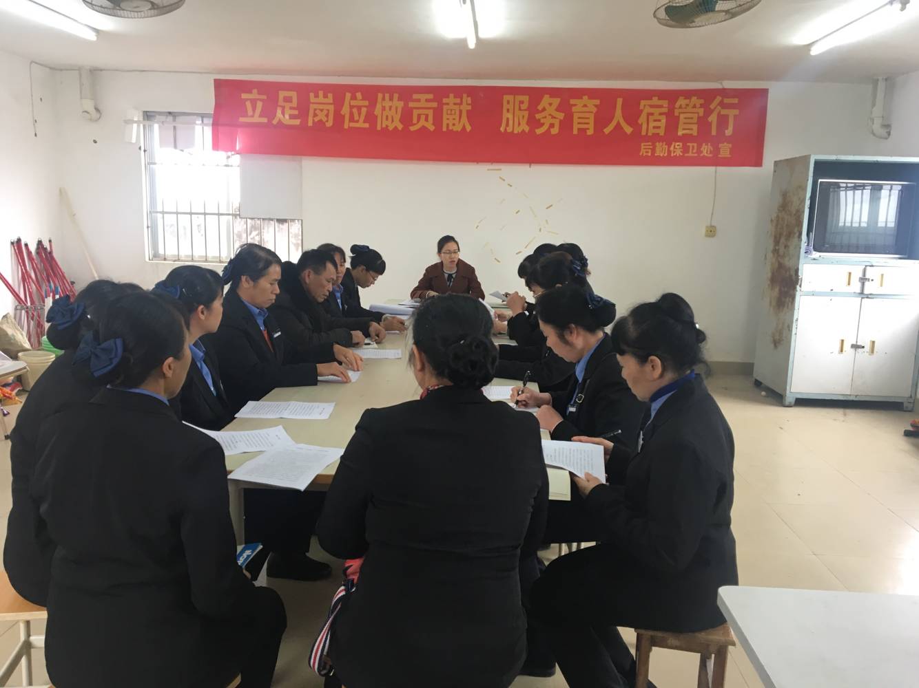 (后勤保卫处讯 黄春莉/文 )为加大“三全”育人工作向基层延伸力度,激发一线员工育人热情,3月26日下午,后勤保卫处在学生宿舍会议室召开“立足岗位作贡献