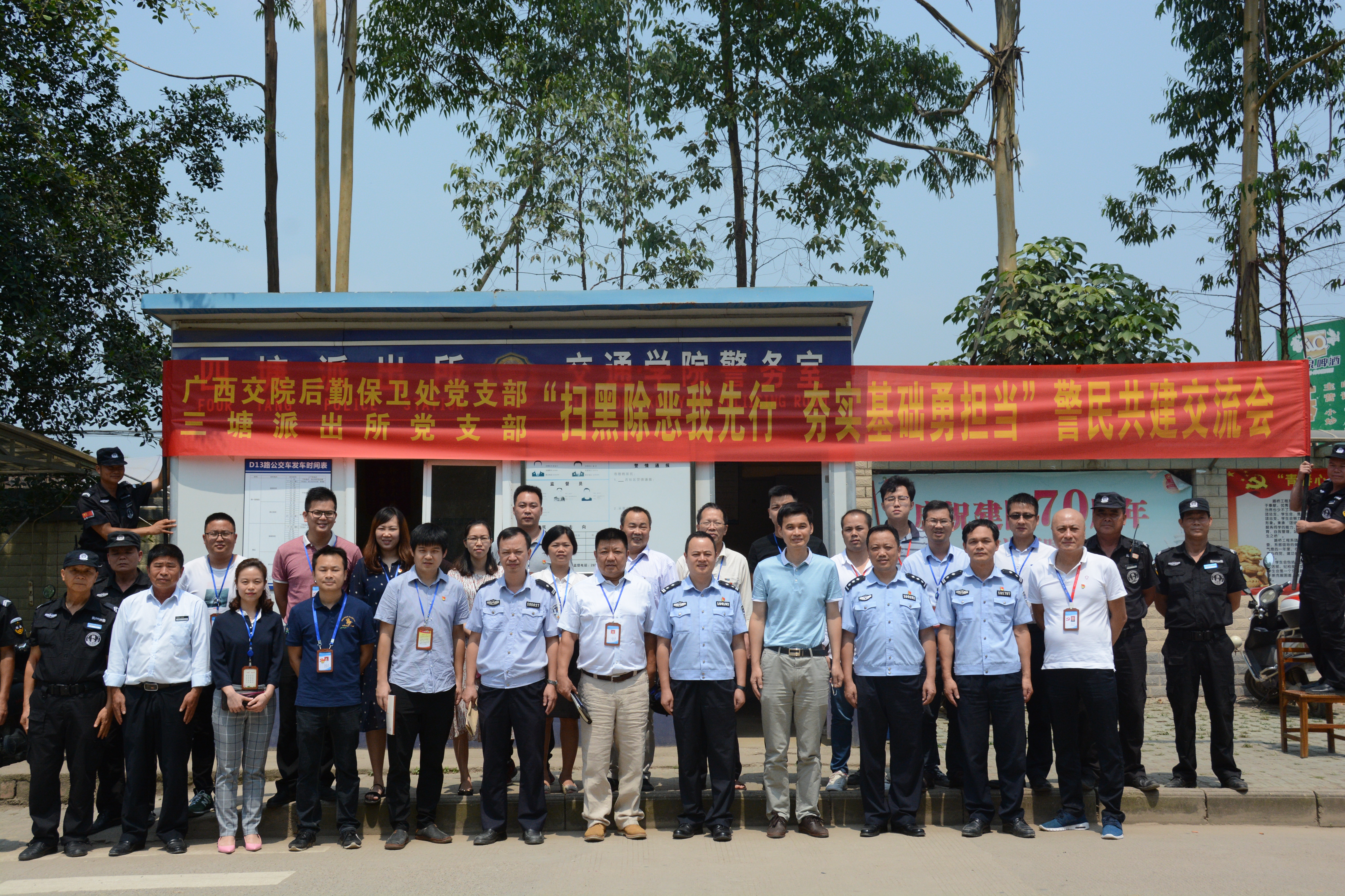 会上,韦红教副院长代表学院与三塘派出所签署了为期三年的警民共建协议。会后,全体党员分批于昆仑、园湖两校区,向学生、老师、商户、后勤保卫基层人员分发“扫黑除恶”宣传单,讲解校园黑恶势力的危害以及处置办法,排查校内是否存在“涉黑”线索。