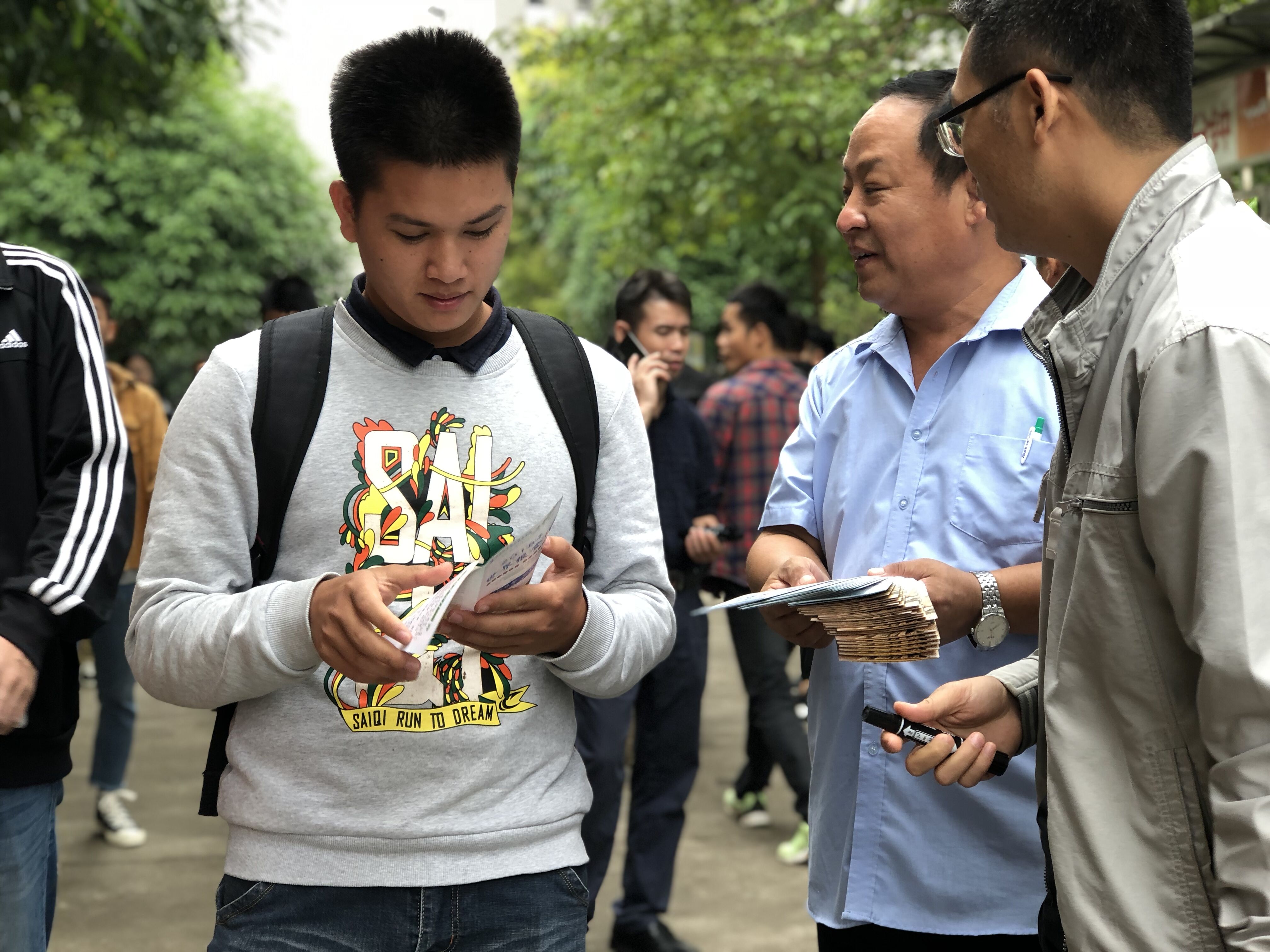 膳食部老师、食堂经营户向同学们发放节粮宣传册
