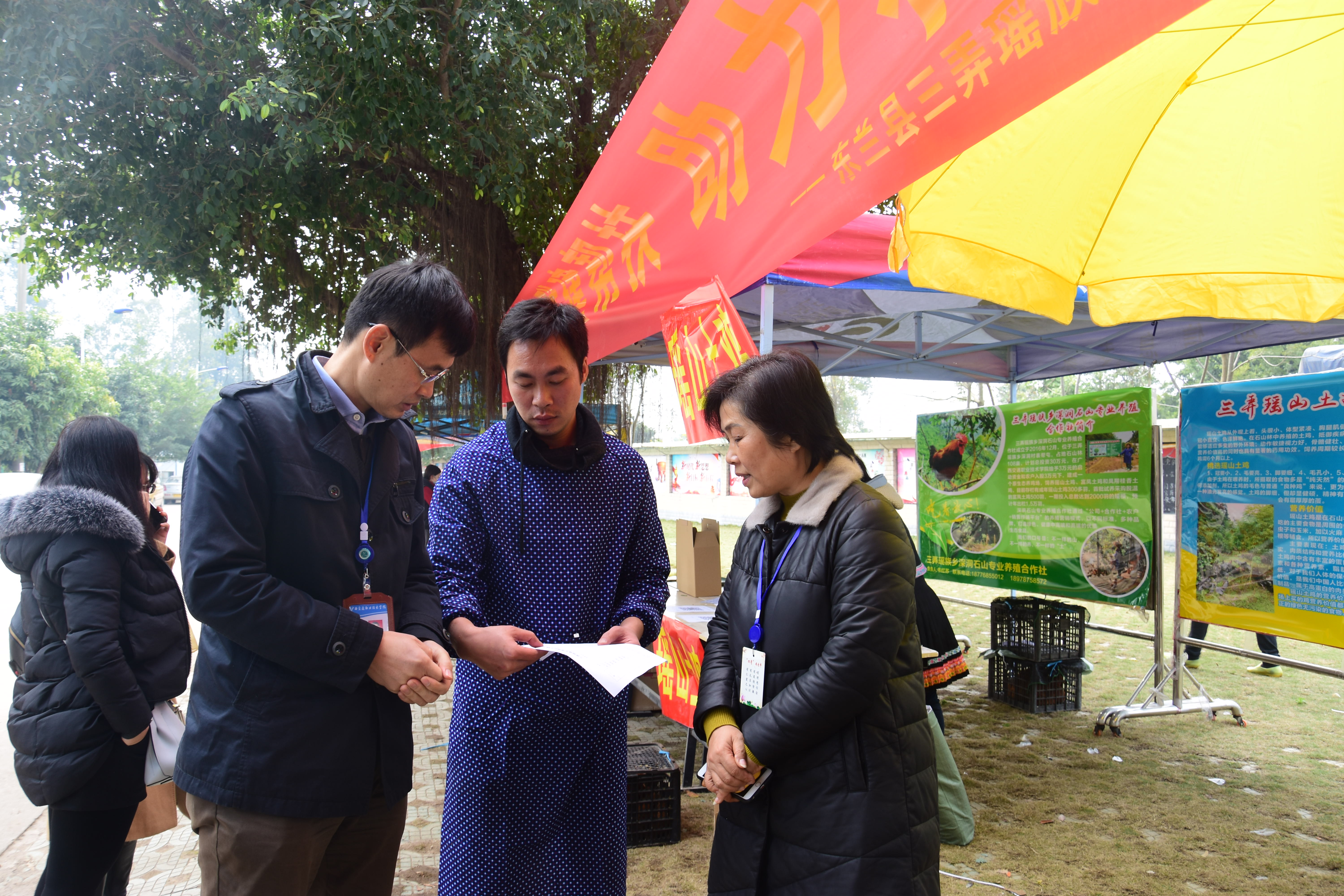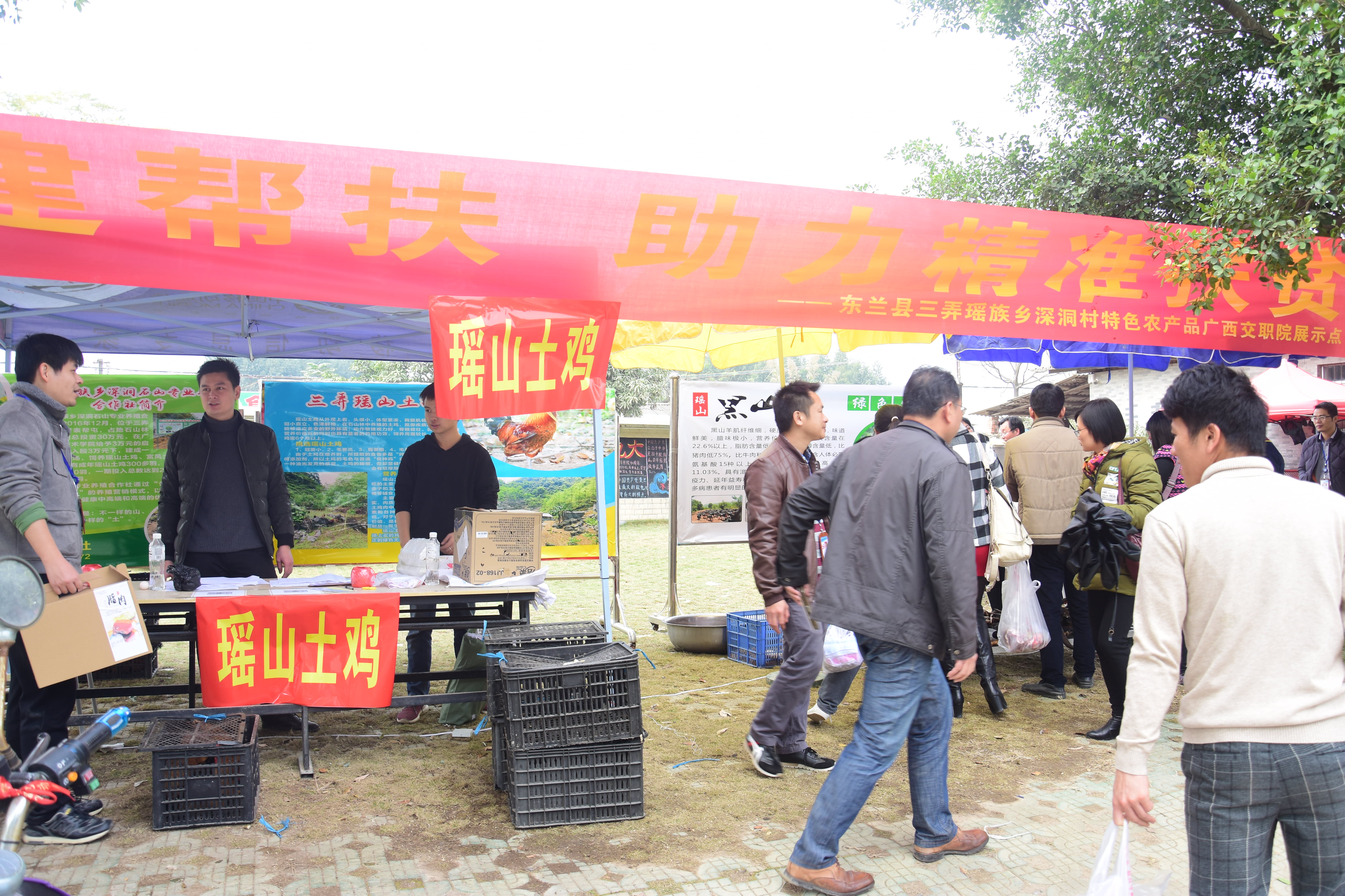 (后勤保卫处党支部 讯 黄春莉 图/文) 1月15日,由后勤保卫处党支部联合学院“第一书记”纪庆俏所驻深洞村党支部开展的“校地联建帮扶,助力精准扶贫”深洞村特色农产品展销主题党日活动在北区进行,活动得到学院党委的大力支持。学院党委书记温宗胤、副院长黄琼念、韦红教等到场指导工作。