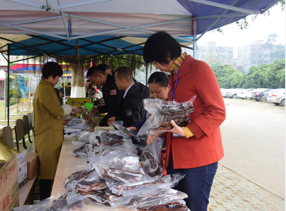 活动现场气氛热烈,大家纷纷献上爱心,帮助贫困村民解决产品销路。活动现场设置了烟熏腊肉、黑山羊、山茶油、瑶山土鸡、野生蜂蜜5个展台,展台前人头攒动,热闹非凡,不少老师购买了预定数量的农产品后仍询问是否能继续购买。原计划下午5点结束的活动因产品售罄提前至中午1点结束,短短半天时间内销售额达到了6万余元。