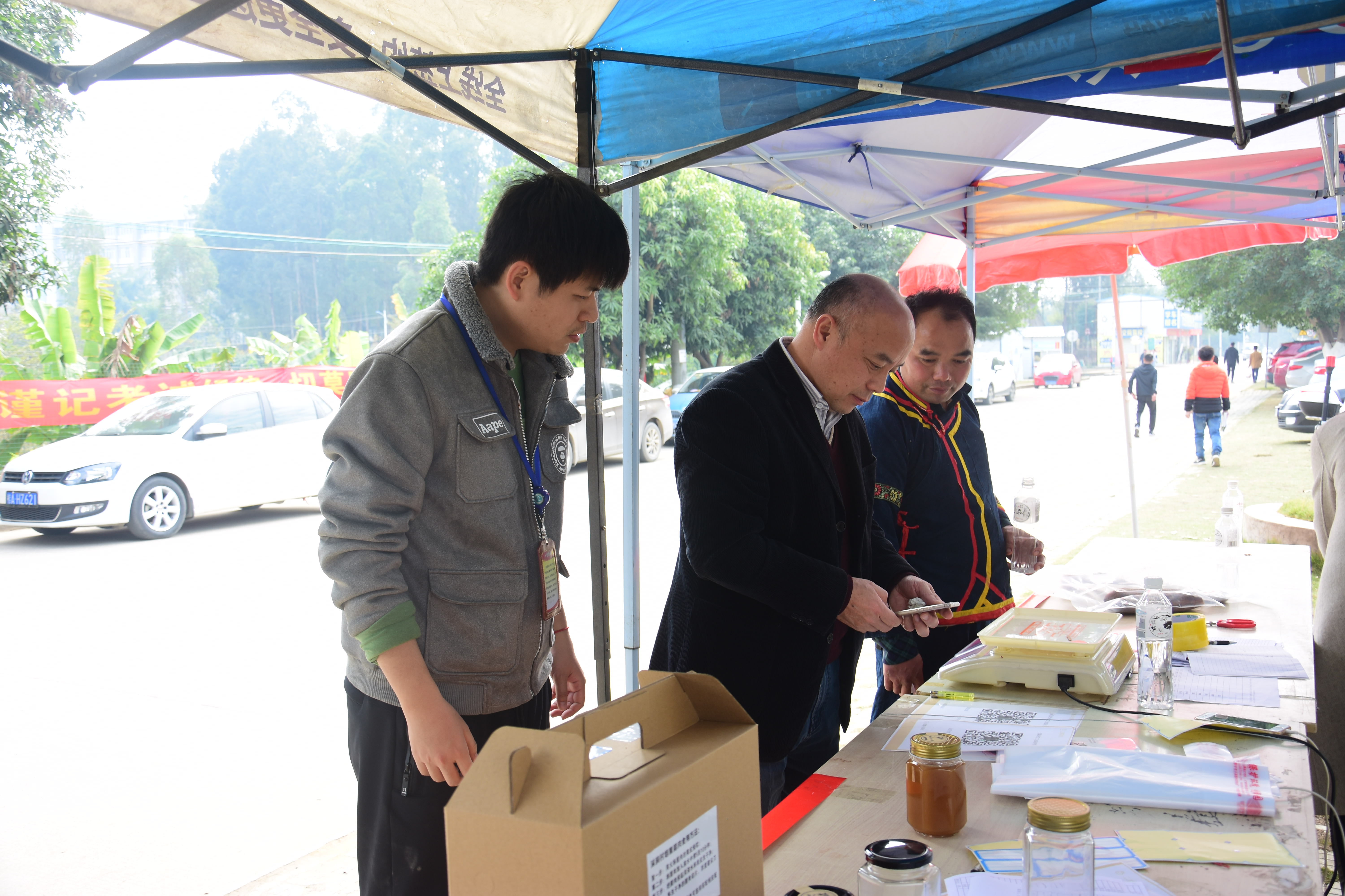 学院老师在选购农产品