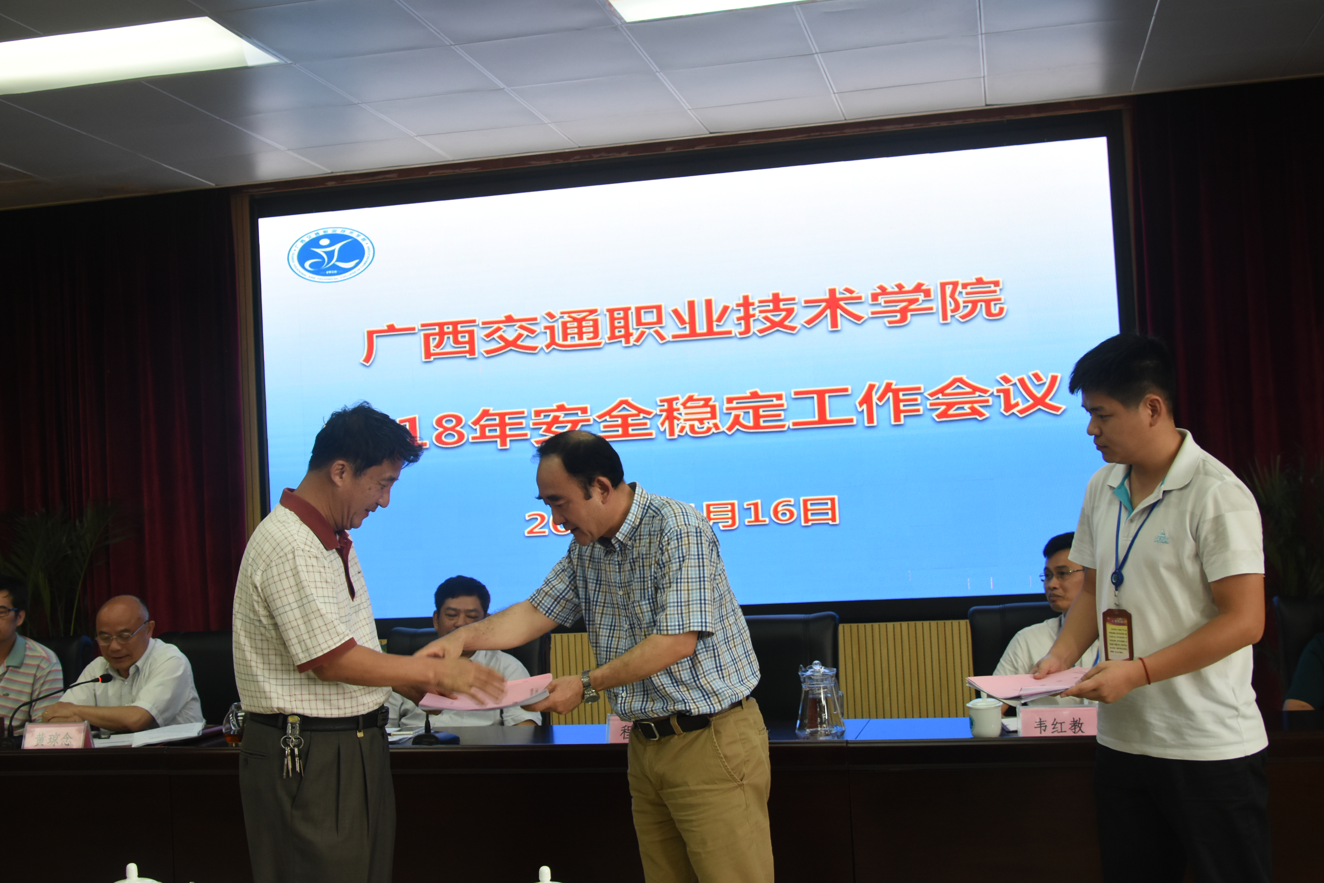 会上,行政部门代表及各系部负责人向程轮院长递交了《广西交通职业技术学院2018年度社会治安综合治理及校园安全管理工作责任状》。