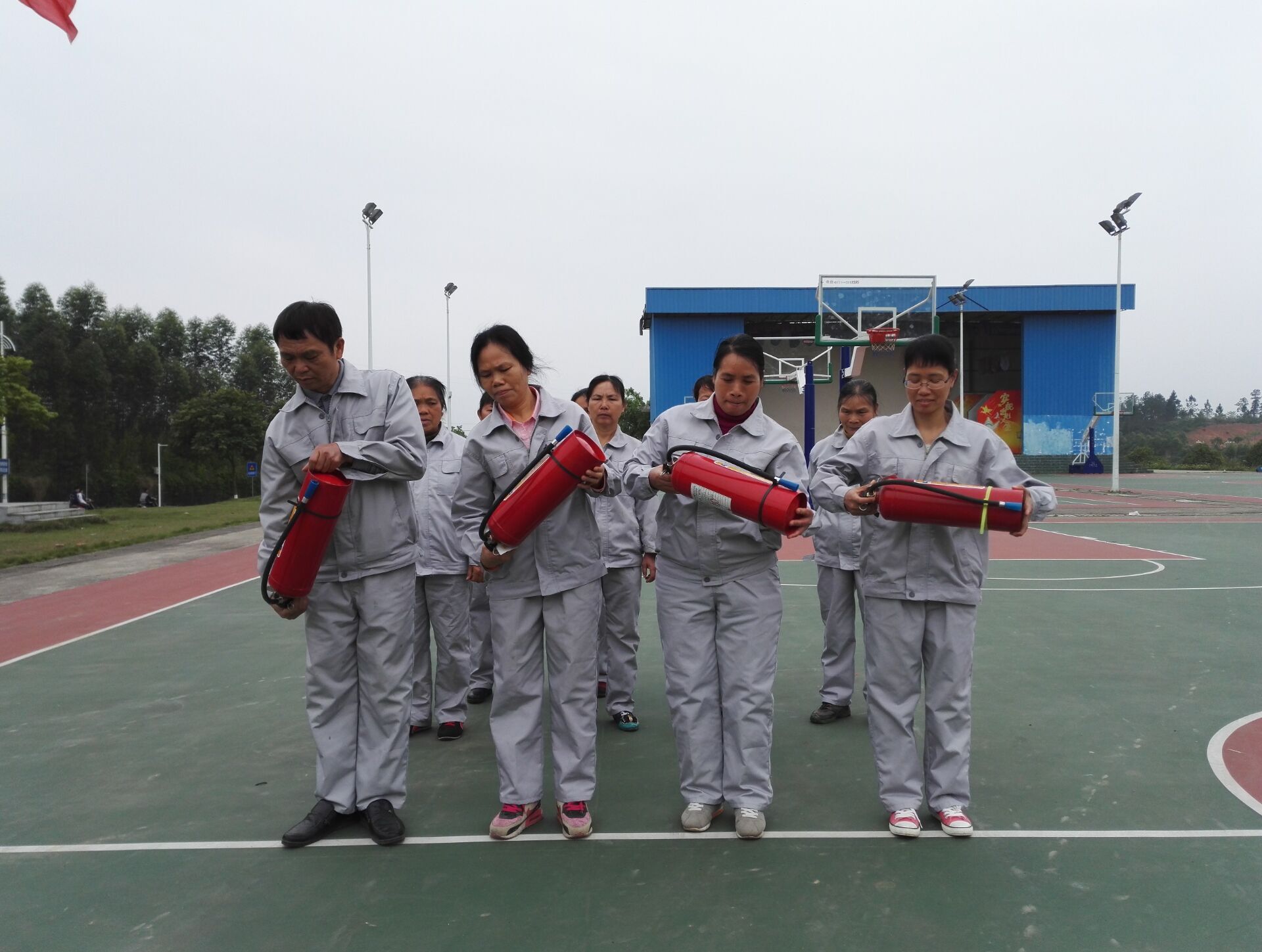 随后负责人对灭火器、消防水带的用法进行了详细的教学。每个宿管员按照“一提,二摇,三拔,四喷,五收”的步骤对干粉灭火器的使用进行了模拟演练,培训结束后均能了解和掌握灭火器材的使用方法。