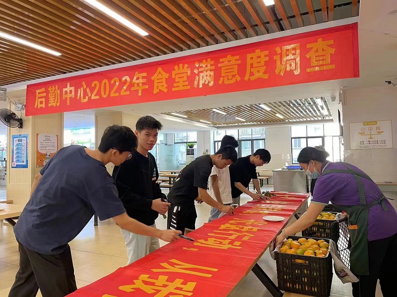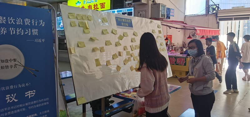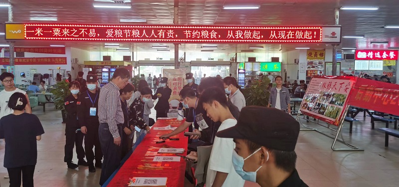 活动现场,我中心在各个校区食堂通过张贴宣传板报、横幅、展板及利用LED屏播放节粮标语等方式进行宣传,并开展食堂满意度调查活动,以便于更好的提升服务质量。接着,我中心党员、社团学生代表、食堂工作人员参与其中劝导师生们“光盘行动”,并告诫他们要养成节约粮食的好习惯,随后,师生们纷纷在横幅上签字做出承诺及在“制止餐饮浪费”留言墙上写上心语,共同倡议反对粮食浪费从我做起。