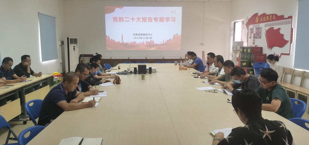 (后勤保障服务中心 黄少雄文/图)11月9日下午,后勤中心在北区党员活动室开展以“学习党的二十大报告和清廉交院建设”为专题的学习会,会议由后勤中心党支部书记李锦主持,后勤中心所有人员参加了集体学习会。