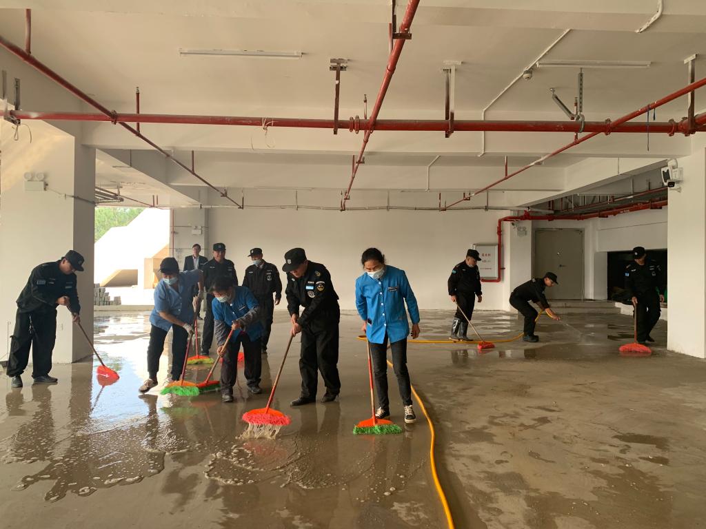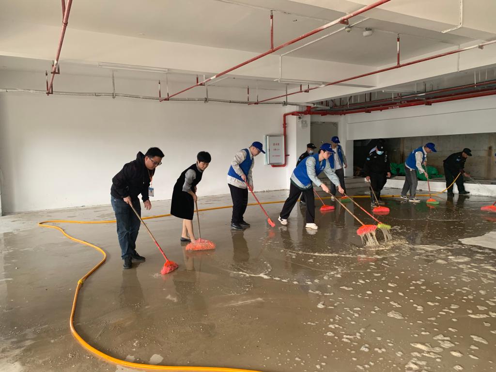 活动现场,全体党员和物业公司员工分工合作、相互配合,对21栋学生公寓架空层的各个角落及地面污泥进行全方位清扫、冲洗、垃圾清运,大家干得热火朝天、汗流浃背,充分发扬了一不怕苦二不怕累的奉献精神,经过一个下午的共同努力,架空层的卫生面貌焕然一新。