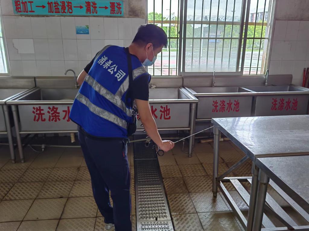 为了保障后厨油烟排放的顺畅和环保性,各食堂对油烟管道进行了全面清洗。同时,对各食堂内进行灭四害(苍蝇、蚊子、老鼠和蟑螂)消杀工作。