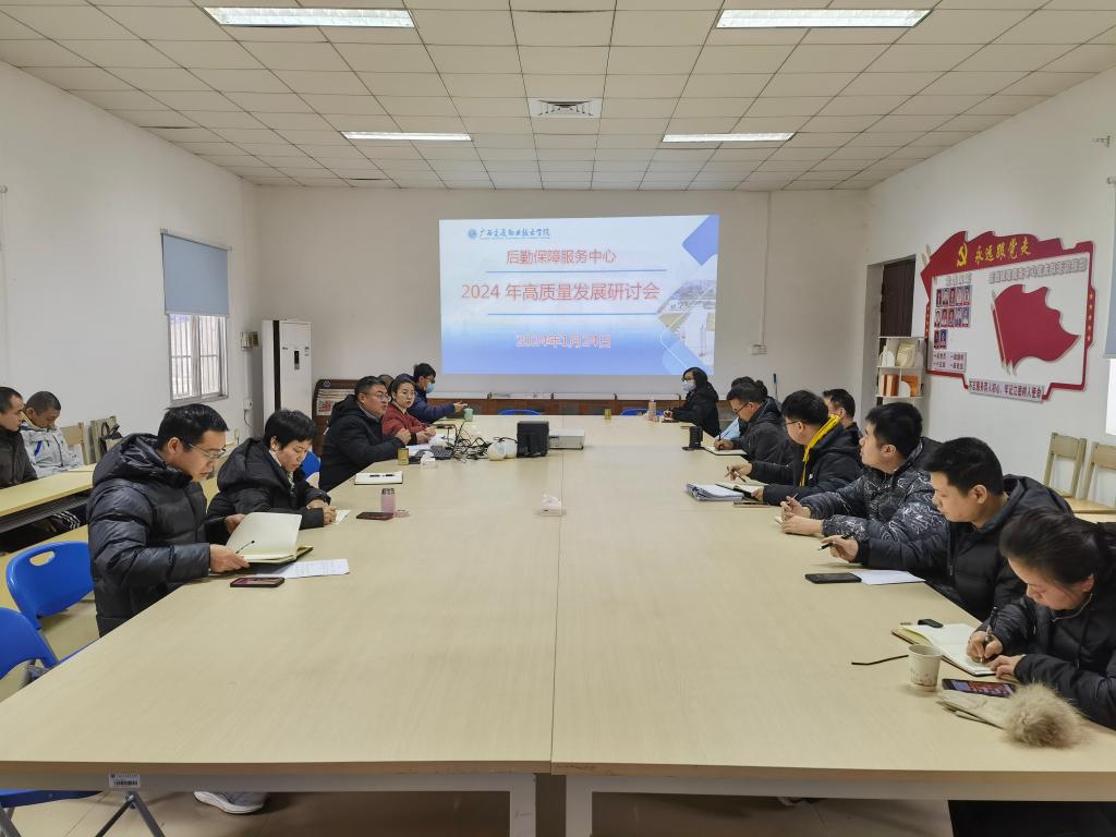 (后勤保障服务中心讯 王宇冰文/黄少雄图)为加快推进广西新一轮“双高”建设工作,充分做好国家第二轮“双高”申报准备,服务面向东盟的职业教育开放合作创新高地,推动我校高质量发展。1月24日,后勤保障服务中心全体人员在北区后勤党员活动室召开2024年高质量发展研讨会,会议由邱文成主任主持。